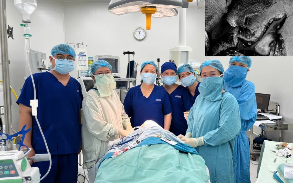 BS.CKII Hồ Vân Phụng – Quyền Trưởng khoa Răng Hàm Mặt đã huy động khẩn ekip Mắt – Răng Hàm Mặt – Tai Mũi Họng cùng phối hợp phẫu thuật. Trong hơn 2 giờ, các bác sĩ cắt lọc mô, tái tạo nhiều lớp từ trán, cung mày đến mi trên, khôi phục mí mắt và hệ thống lệ đạo, đồng thời khâu ẩn theo nếp da để hạn chế sẹo. Sau 2 tuần điều trị và theo dõi thị lực, bệnh nhi đã xuất viện.