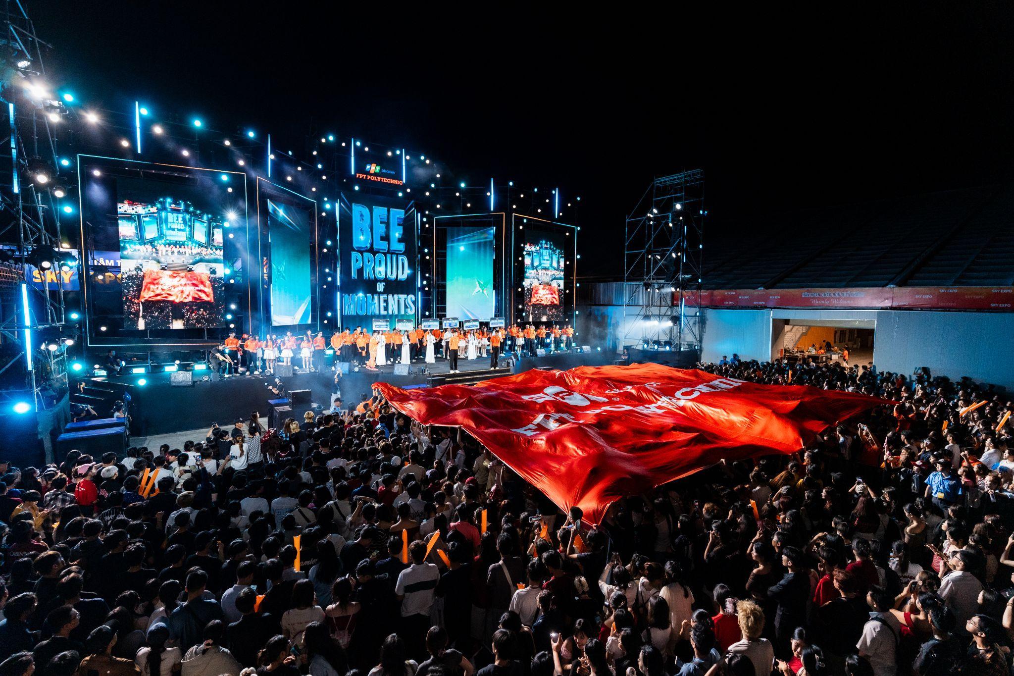 Tại Tp. Hồ Chí Minh, gần 10.000 sinh viên đã cháy hết mình trong biển âm thanh – ánh sáng, cùng nhau hát, nhảy và reo hò, biến đêm nhạc thành cột mốc mở đầu cho hành trình tuổi trẻ. Đó không chỉ là một buổi concert, mà là khoảnh khắc để mỗi tân sinh viên FPT Polytechnic chính thức viết nên những trang đầu tiên trong quãng đời sinh viên của mình.