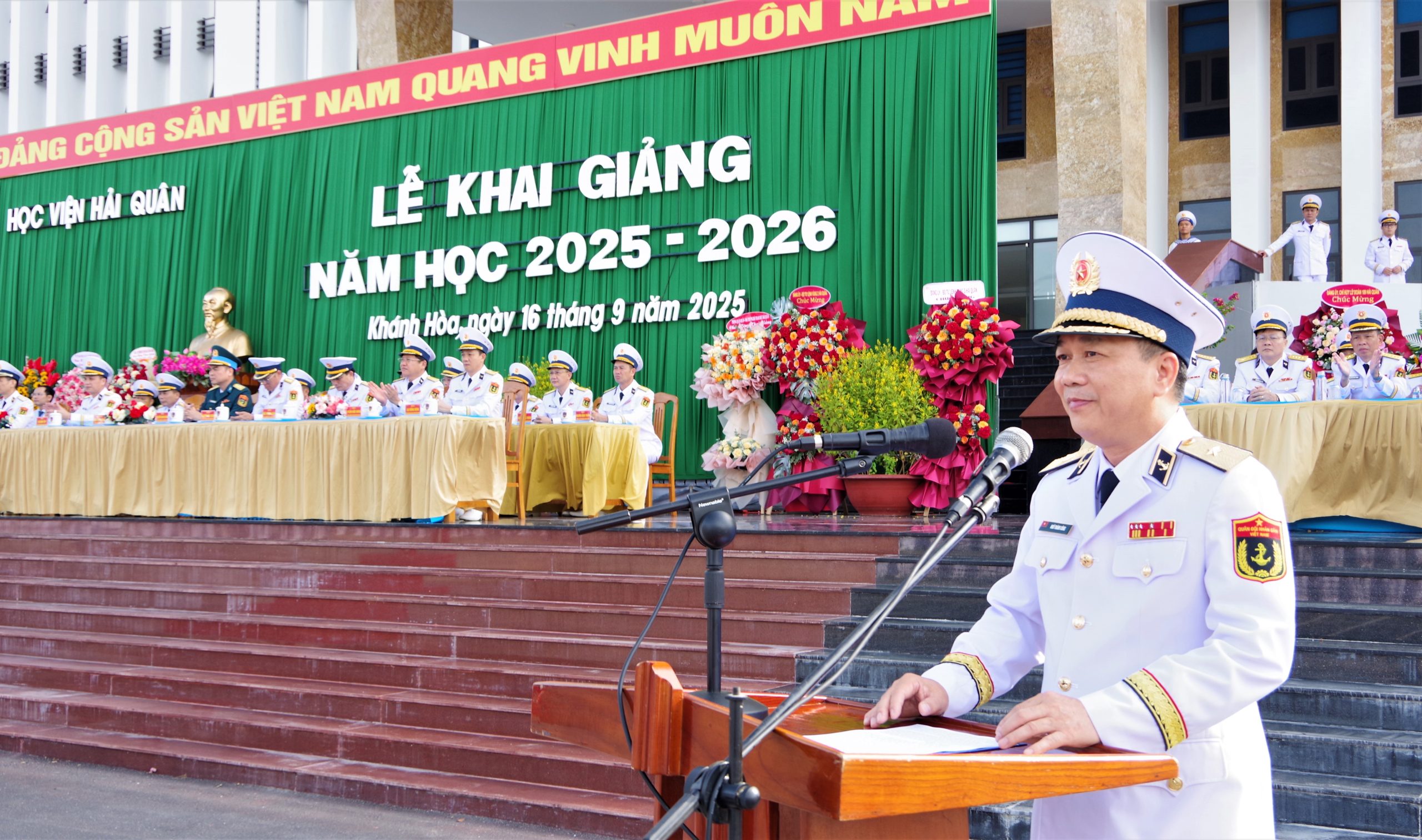 Chuẩn Đô đốc Ngô Thành Công đọc diễn văn khai giảng.