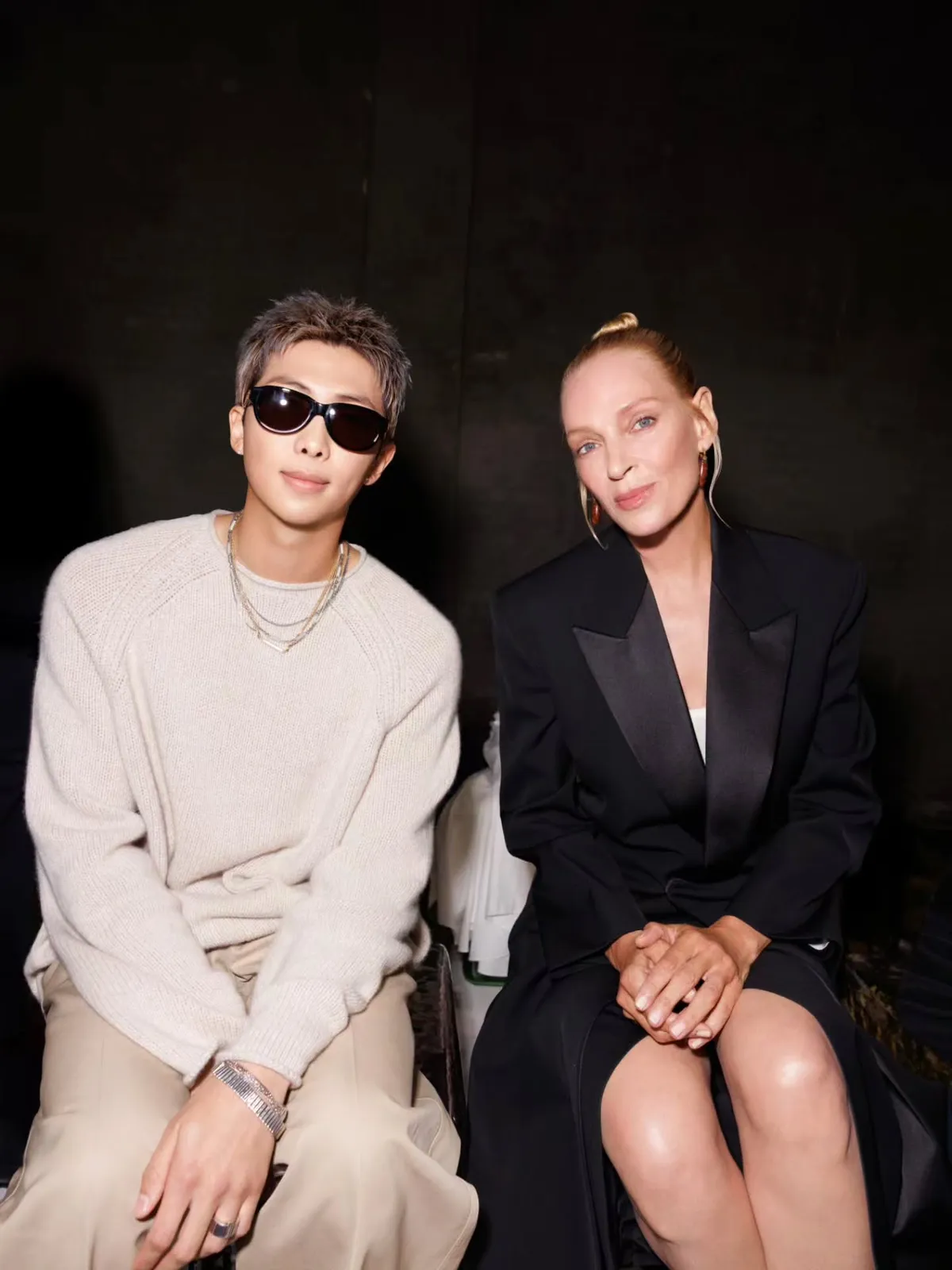 RM chụp ảnh cùng ngôi sao Hollywood Uma Thurman tại sự kiện của thương hiệu Bottega Veneta – 2026 SUMMER. (Ảnh: RM Instagram)